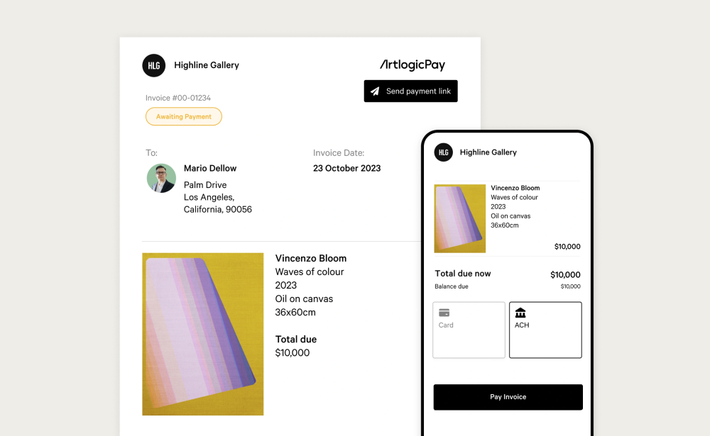 Managing your studio shouldn’t take time away from creating. With Artlogic’s integrated inventory, contact, invoicing, and payment tools, you can streamline your business and stay focused on what matters most — your art.