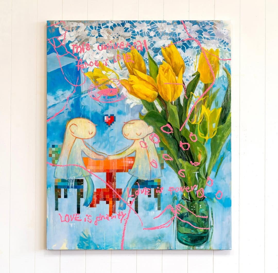 Incorporate language into a piece of work. I’ve been really drawn to pieces that weave in the written word — there’s something powerful about how language can anchor a visual piece in a specific, felt emotion.