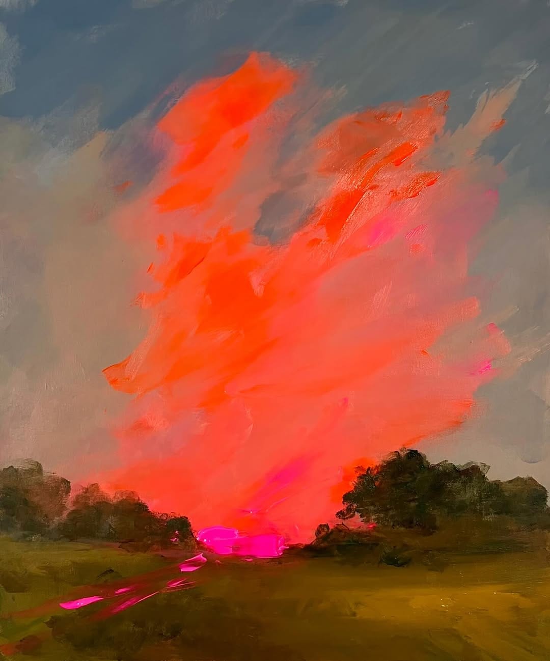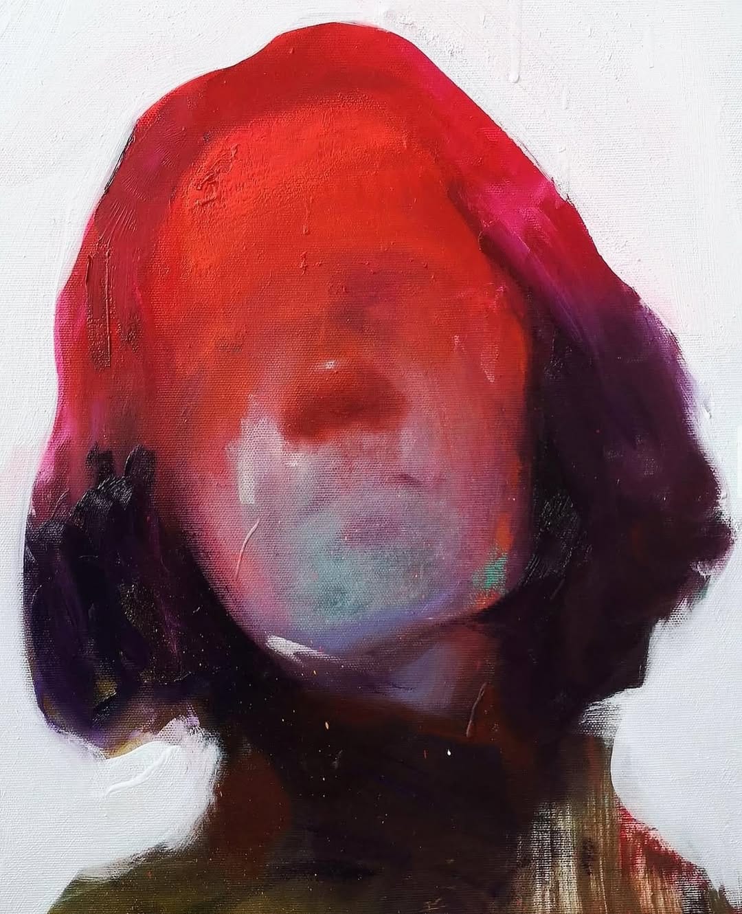 In her pieces, she works mainly with oil pastels. Each artwork is bold and expressive, with her rosy-cheeked subjects often being the focal point.