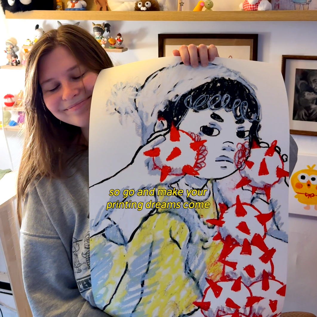 It’s the final week to order this month’s limited-time print, and I’m so excited to share it. Olena — also known as Brave Birdie — creates vivid oil pastel works that carry this joyful, childlike energy. Her piece Pain Selectiveness has such boldness that I knew the print needed to hold onto that.