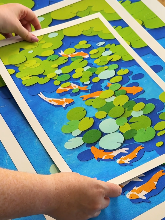 It's your last chance to buy Sarah’s limited edition print — a serene, thoughtful piece of koi fish circling lily pads, created from hundreds of tiny hand-cut pieces of paper. Her technique is so intricate and we managed to translate it faithfully.