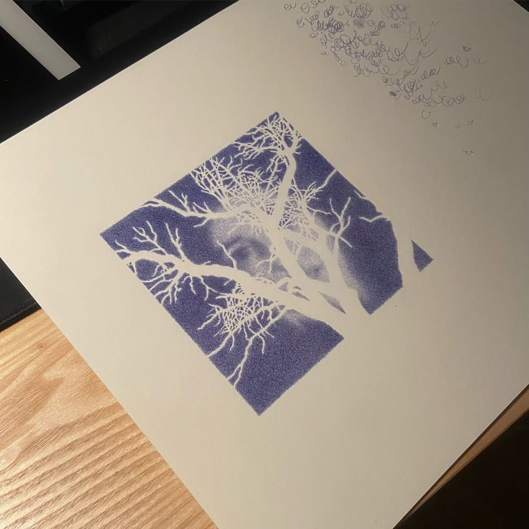 My ballpoint work started out as simple drawings in my sketchbook. I enjoyed the simplicity of the medium - monochromatic and unerasable. I thought about how soft I could make a drawing with a tool that was so sharp, and slowly moved into more complex and larger drawings in the medium. I told myself I would keep working with a ballpoint pen as long as I remained curious as to what I could achieve with the pen - could I work larger? More realistic? More abstract? Would I get satisfaction out of that? I'm still somewhat curious, but admittedly I find myself missing painting. I'm still thinking about what my work will look like this next year.