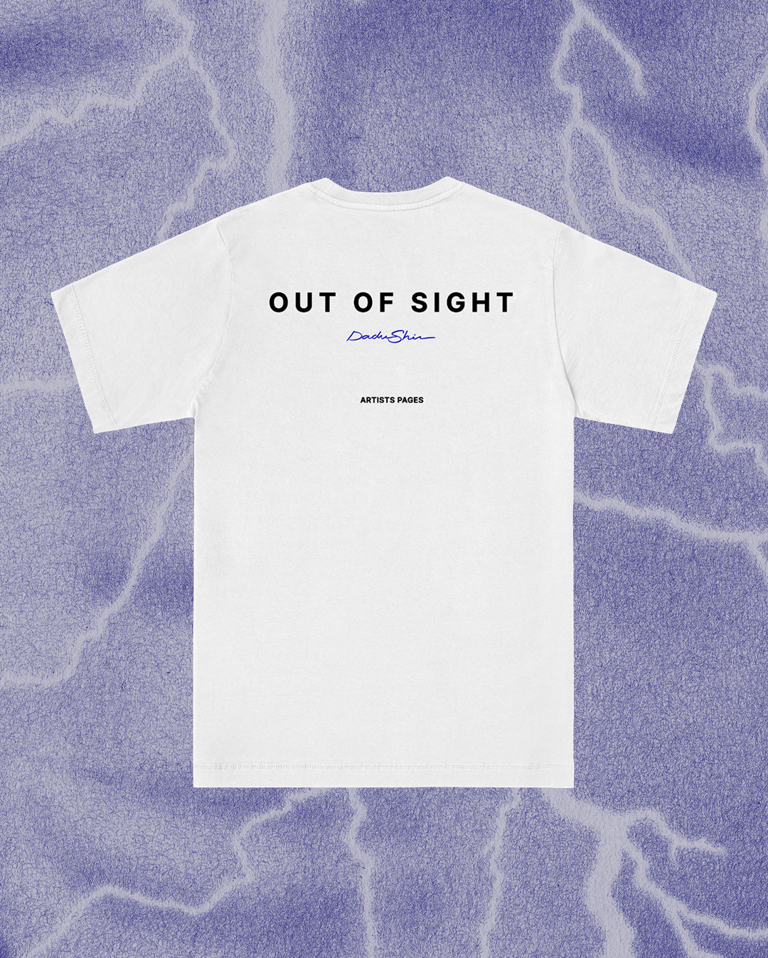Out of Sight, is a 14-day exclusive collaboration with renowned artist Dadu Shin. Available in premium relaxed fit, made from 100% heavyweight organic cotton. Fair Wear, OEKO-TEX®, Vegan, GOTS approved and 220 gsm. Zero waste — made to order.